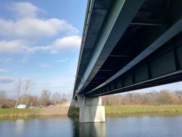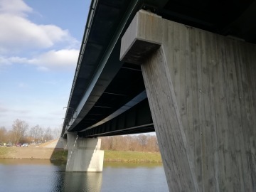 Stávající střední pilíř silničního mostu byl rozšířen pro potřeby podepření středních polí lávky. Nová část středového základu v korytě Labe je založen na mikropilotách.