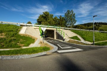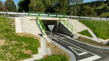Kolegové z EUROVIA CZ vybudovali pod silnicí II/163 ve Frymburku na jihu Čech nový podchod pro pěší i cyklisty, který zvýší bezpečnost provozu pro místní i turisty.